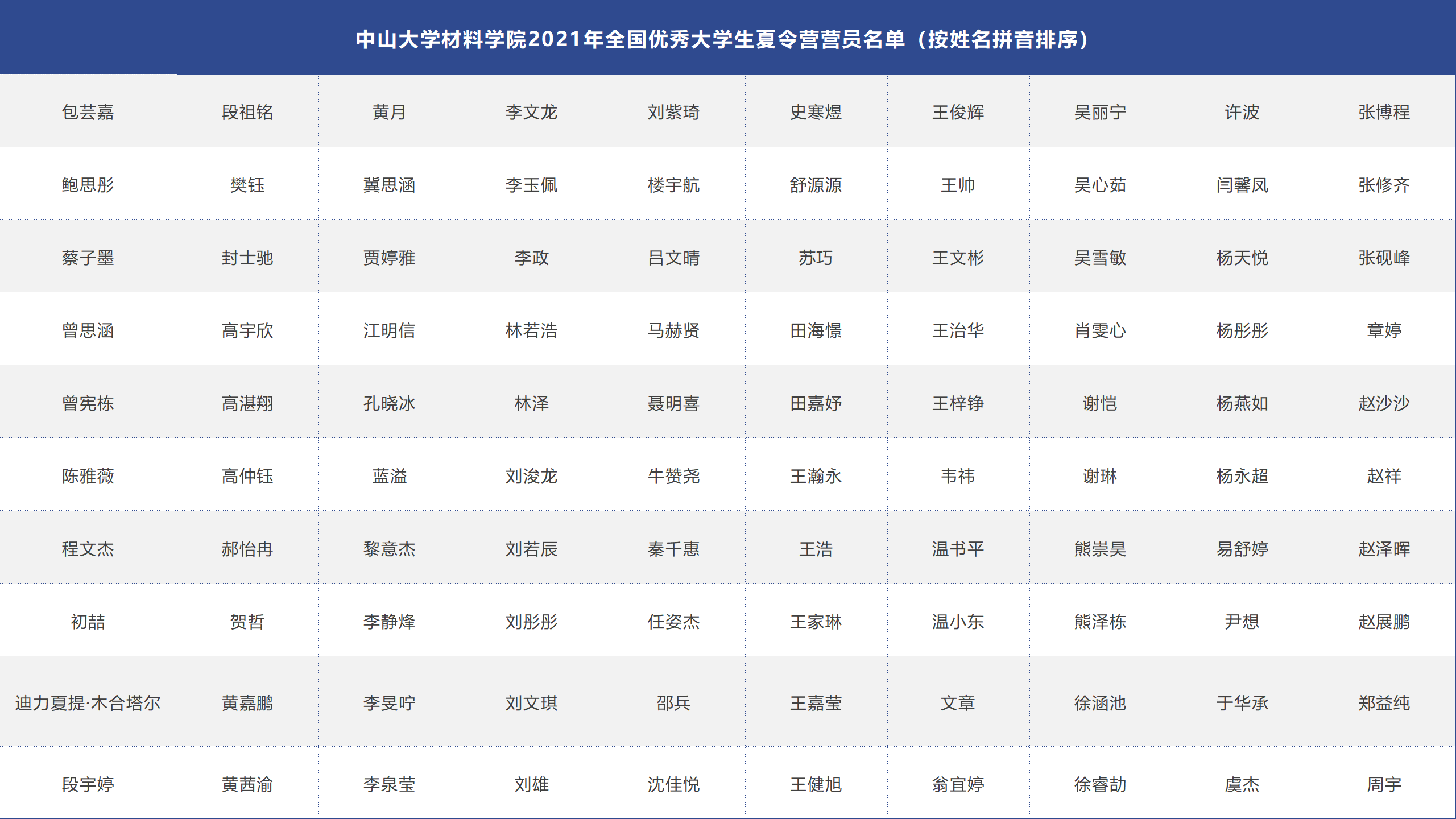 beat365在线唯一官网关于公布2021年全国优秀大学生夏令营营员名单的通知