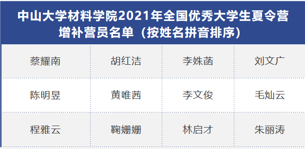 beat365在线唯一官网关于公布2021年全国优秀大学生夏令营增补营员名单的通知