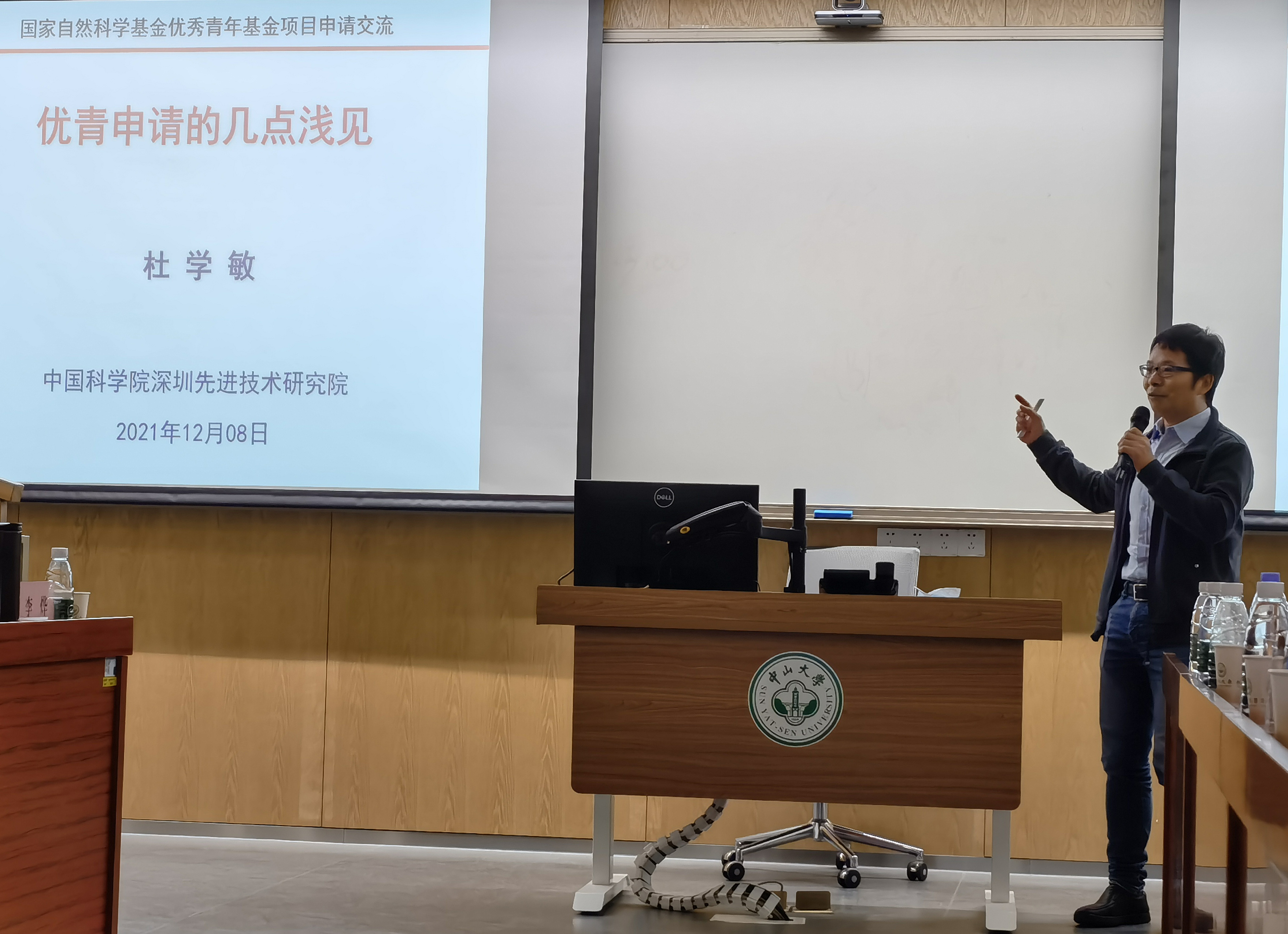 杜学敏研究员作了题为《优青申请的几点浅见》的讲座报告。杜学敏研究员现为中国科学院深圳先进技术研究院研究员、智能医用材料与器械研究中心主任,国家优秀青年科学基金获得者;入选中国科学院青年创新促进会会员、广东省“特支计划”科技创新青年拔尖人才。杜研究员从“何时申请”、“何处申请”以及“如何申请”等三个方面介绍了优青申请的经验。首先,应多与同行交流,做到知己知彼,达到申报基本门槛,越早申报越好;其次,以科学问题和优势特色为导向,选择合适的申报学部,做到事半功倍;最后,归纳现有成果、突出科学问题,再三凝练“有高度、有特色、能支撑、能闭环”的独特学术思想。杜研究员还结合自身多次申报优青的经验,提出“深思考、有取舍、多请教、求极致、从内心、记初心”等注意事项,并以“尽最大的努力,持平常心态”与大家共勉。