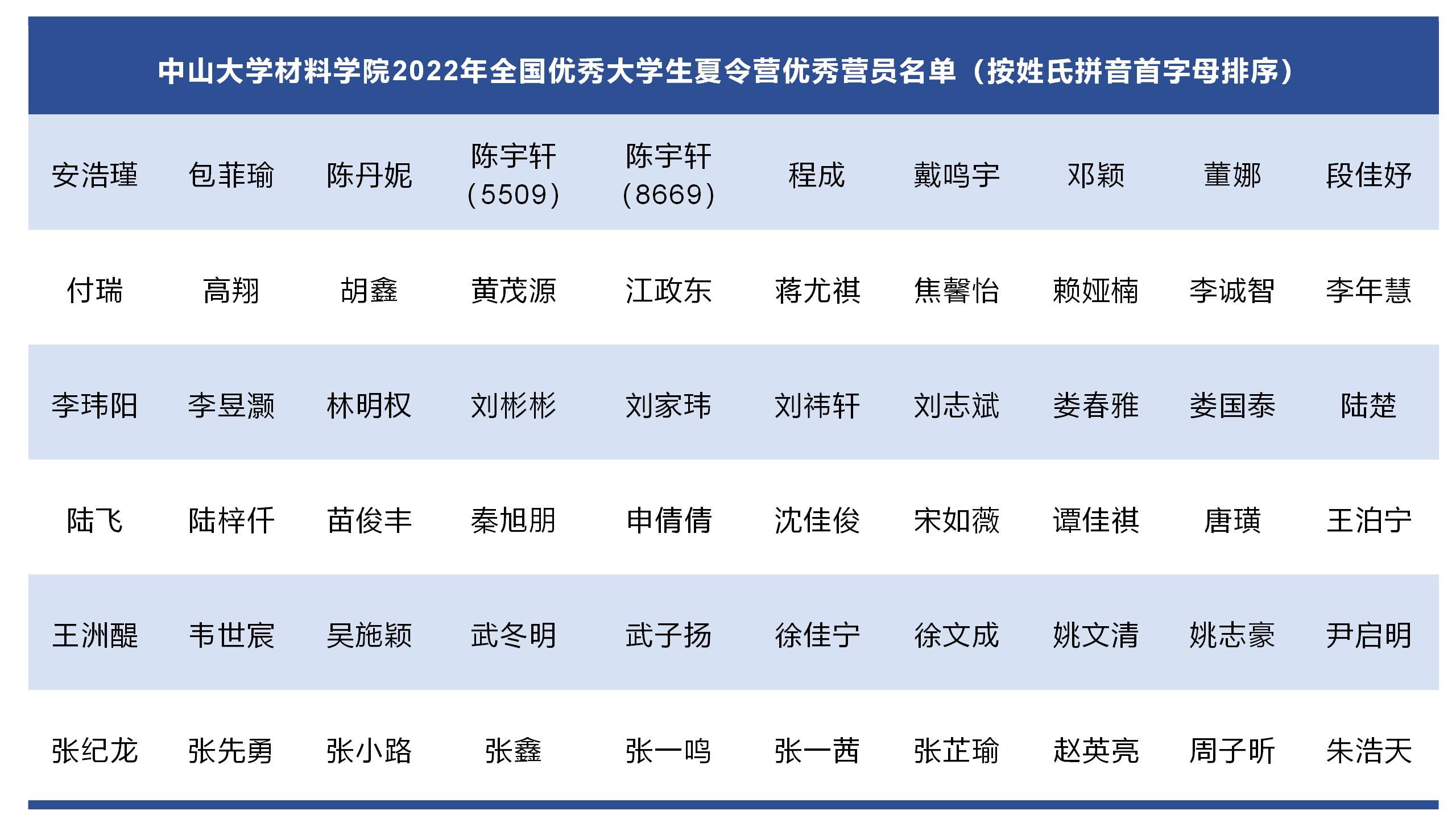 经过综合考核环节,本次夏令营共有60位营员被评选为优秀营员,名单如下: