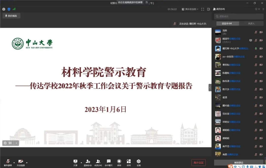 随后,戴红晖书记作警示教育,传达了学校2022年秋季工作会议上纪委书记刁振强同志作的《坚决贯彻落实党的二十大关于全面从严治党的战略部署,为学校人才培养中心工作营造风清气正政治生态》的报告。报告指出,要认真学习党的二十大关于全面从严治党的战略部署,坚定不移推进全面从严治党,把学校各级党组织建设得更加坚强有力。对照党的二十大报告指出的当前党内存在的矛盾和问题,深入查找学校全面从严治党不足和短板。把党的领导、党的建设、全面从严治党抓在经常、严在日常,体现在学校工作全过程和各方面,为学校事业健康发展营造风清气正的政治生态。