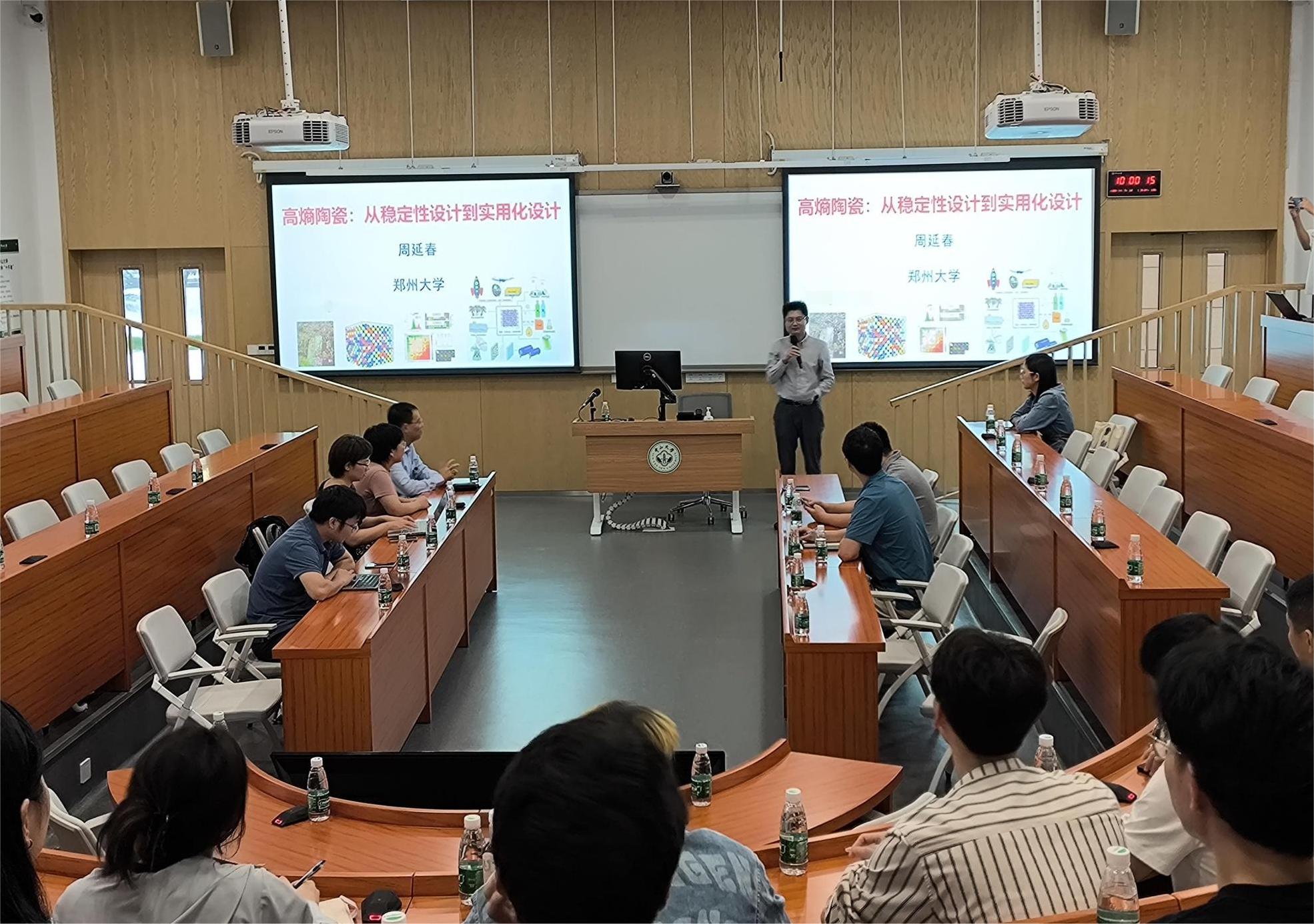 本次讲座主讲人为国家杰出青年基金获得者、世界陶瓷科学院院士、亚太材料科学院院士、美国陶瓷学会会士、郑州大学的周延春教授,主题为“高熵陶瓷:从稳定性设计到实用化设计”。讲座由beat365在线唯一官网副院长李斌教授主持,四十余名师生参加。