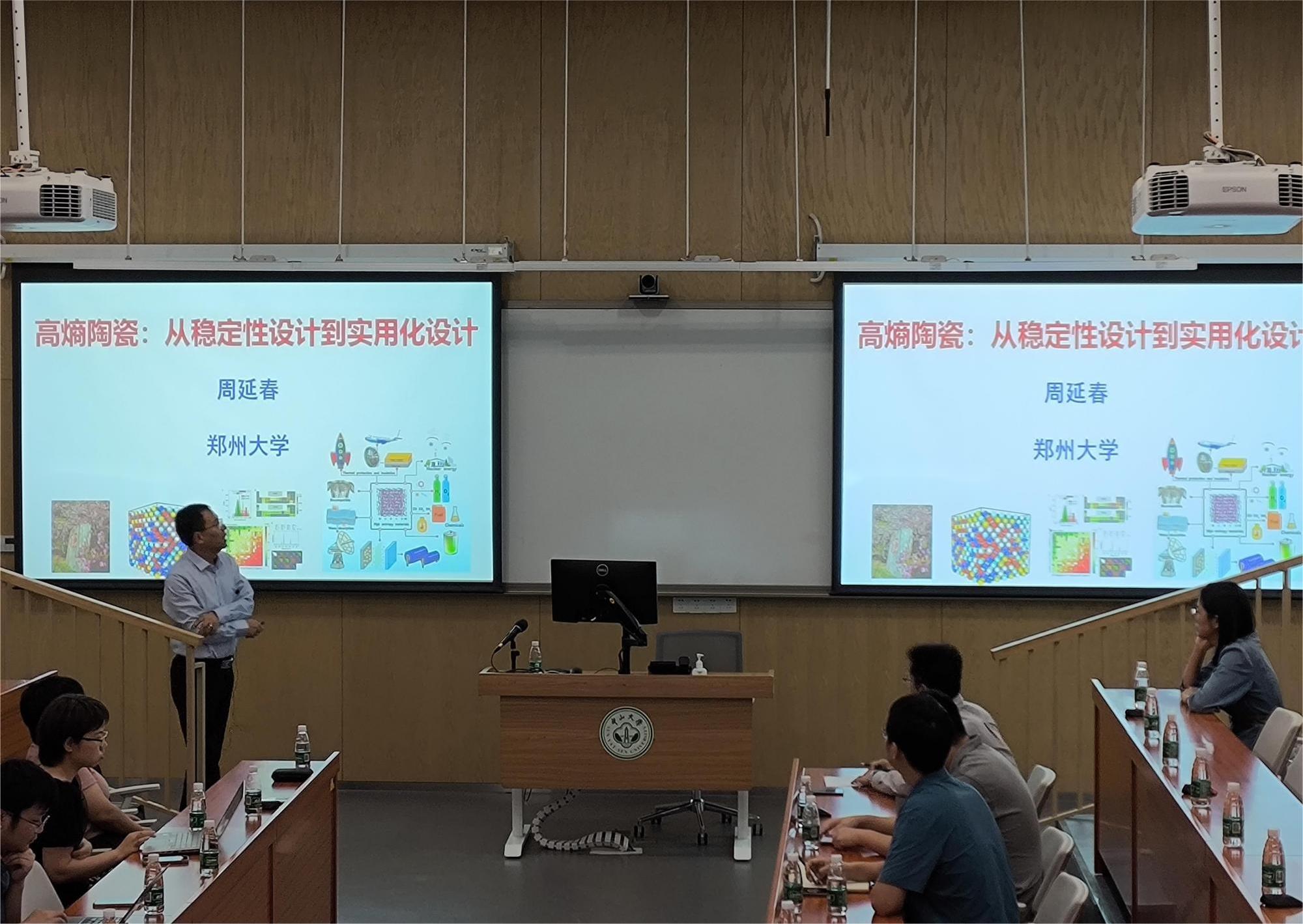 周延春教授主要从事高温陶瓷及复合材料的多层次结构设计、制备和性能研究,在相关领域取得了杰出的学术成就。在本次讲座中,周延春教授结合自己的研究成果,从高熵陶瓷的定义出发,与高熵合金类比,为师生们系统阐述了高熵陶瓷的发展历程、设计理念、性能特征以及应用前景。