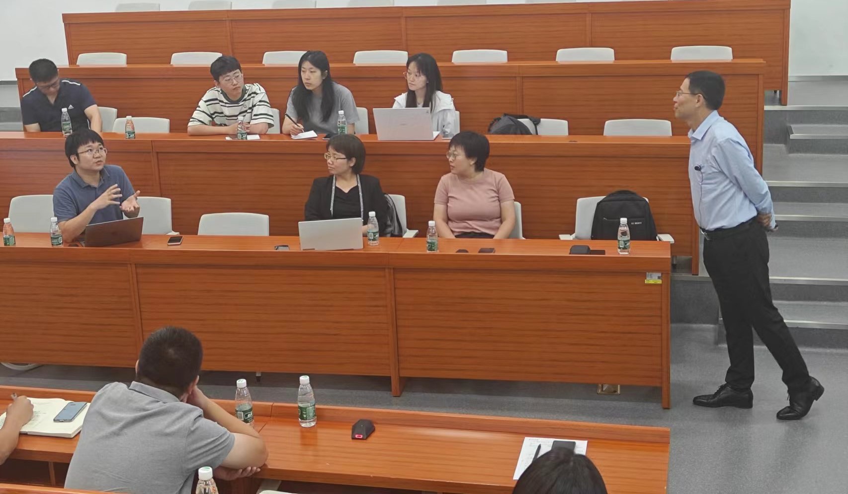 在讲座交流环节,现场师生们纷纷向周延春教授提问,就高熵材料的结构特征、技术难题、应用前景以及第一性原理和分子动力学计算等问题进行了深入的交流和探讨。周教授耐心回答了每一个问题,并与现场师生们进行了热烈的讨论。他的回答不仅让现场师生们更加深入地了解了高熵材料的相关知识,还启发了一些新的思考和研究思路。