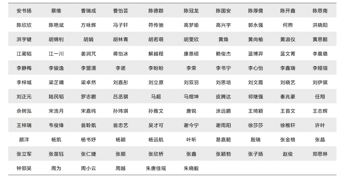 经过对报名材料的审核和综合评议,现将本院2024年全国优秀大学生夏令营入营营员名单公布如下(按姓名拼音排序):