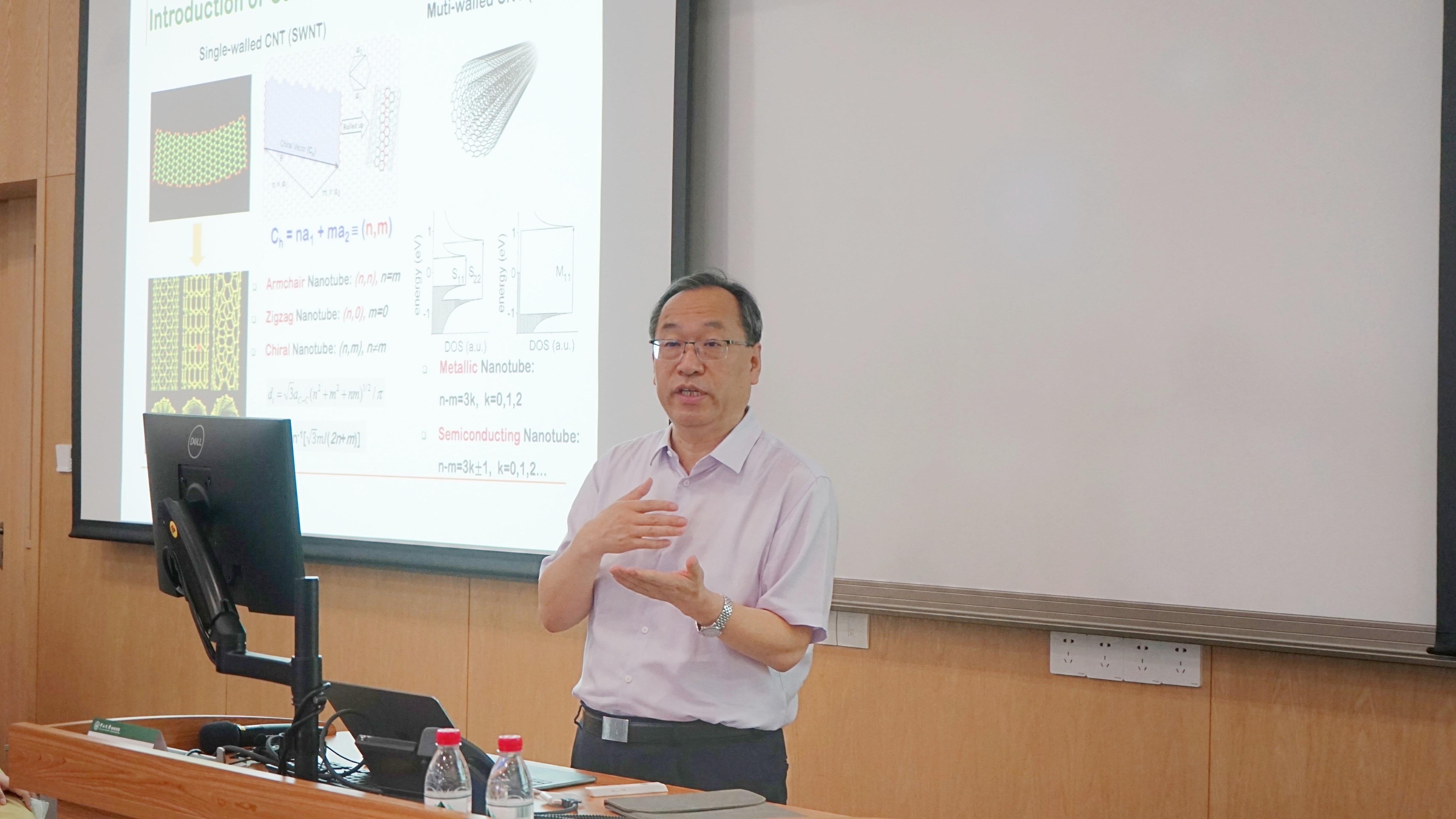 张锦院士从单壁纳米管的特点出发,深入浅出地剖析单壁纳米管材料结构独特的一维纳米结构和优异的电学性质。他从“碳基芯片”的重大需求出发,结合传统纳米材料的研究历程和国内外发展现状,指出目前国内国际形势下面临的重大难题和挑战。他重点围绕单壁碳纳米管的结构控制生长展开,提出了独创性的科学思考和解决方案。