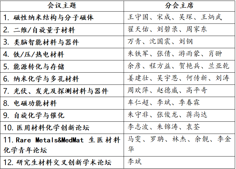 会议主题重点讨论新兴功能材料的化学制备、物理特性及其交叉领域应用,包括但不局限以下主题: